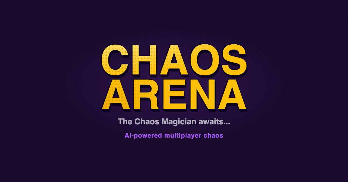 An AI-powered multiplayer gaming platform where an AI agent called the Chaos Magician builds games in real-time. Players can interact with the AI through chat commands, participate in various game modes like survival and races, and use cryptocurrency tokens to influence gameplay.