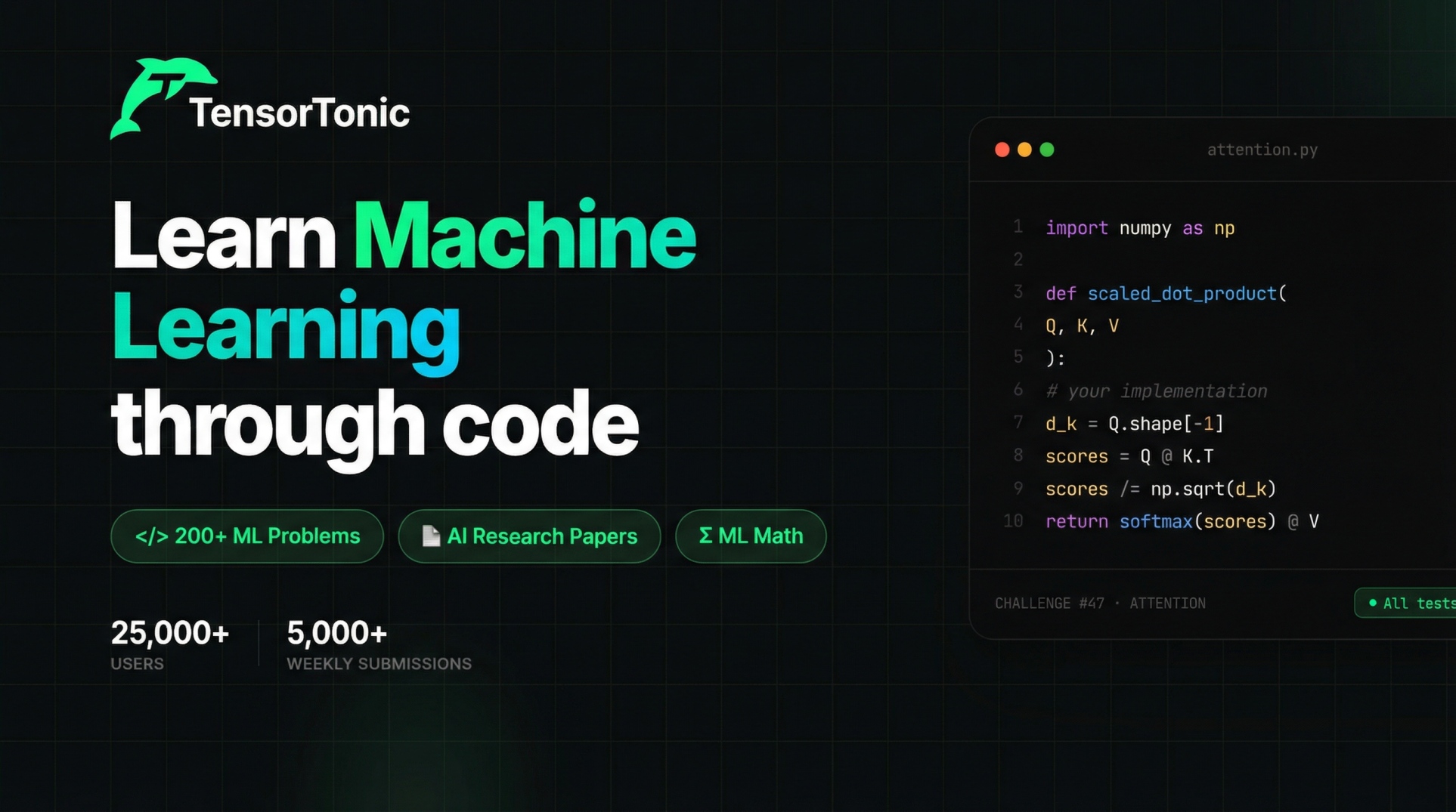 An interactive coding platform for learning machine learning by implementing 200+ algorithms and research papers from scratch. Features gamified challenges, interactive visualizations, and a browser-based IDE to master ML concepts through hands-on coding.